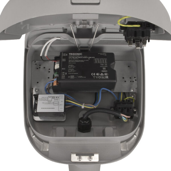 La eficiencia y versatilidad de la luminaria ABBY se optimizan al permitir la conectividad de los distintos receptores dimables como son nodos internos, Nema ANSI CI136.41 y Nema Book 18, para una telegestión adaptada a cada escenario y abierta a las distintas tecnologías de comunicación.